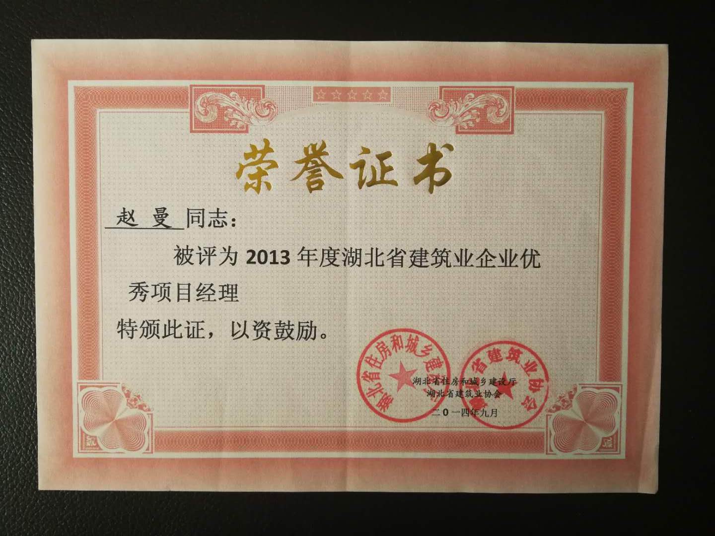 2013年度湖北省建筑業(yè)企業(yè)優(yōu)秀項目經(jīng)理