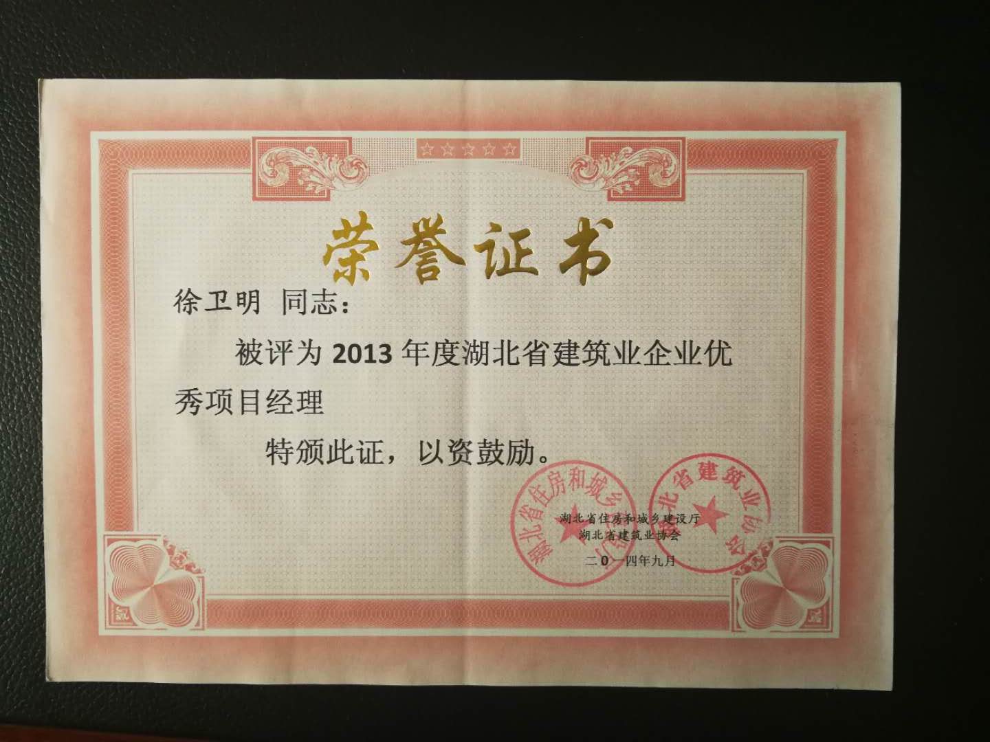 2014年度湖北省建筑業(yè)企業(yè)優(yōu)秀項(xiàng)目經(jīng)理